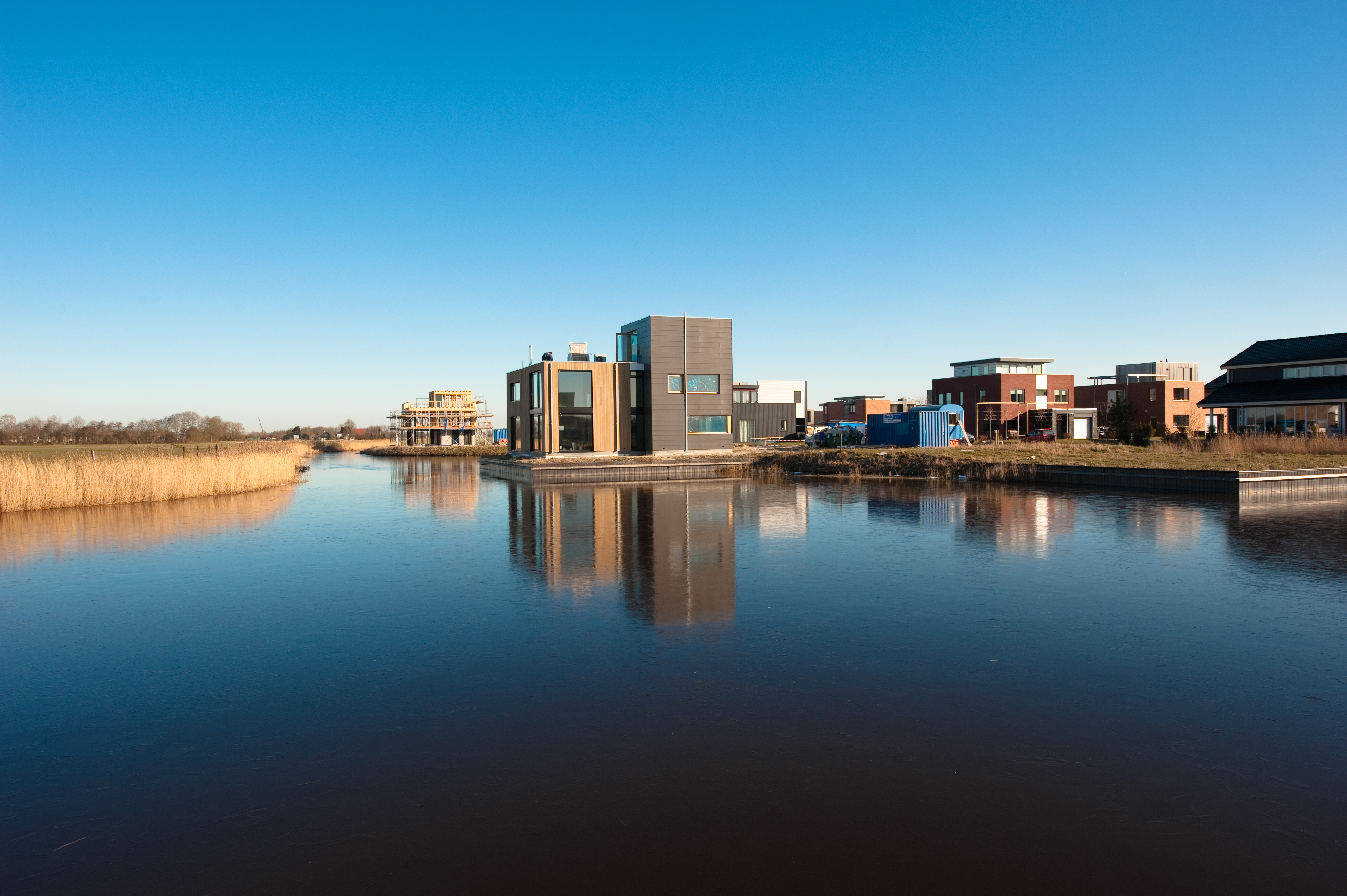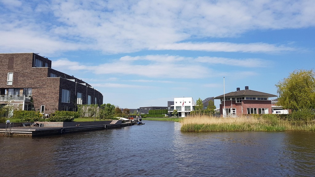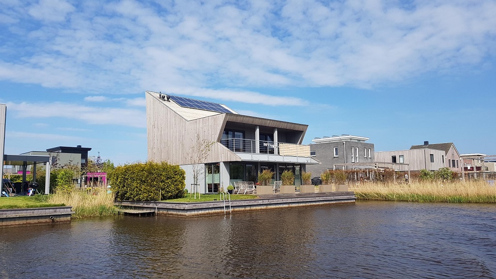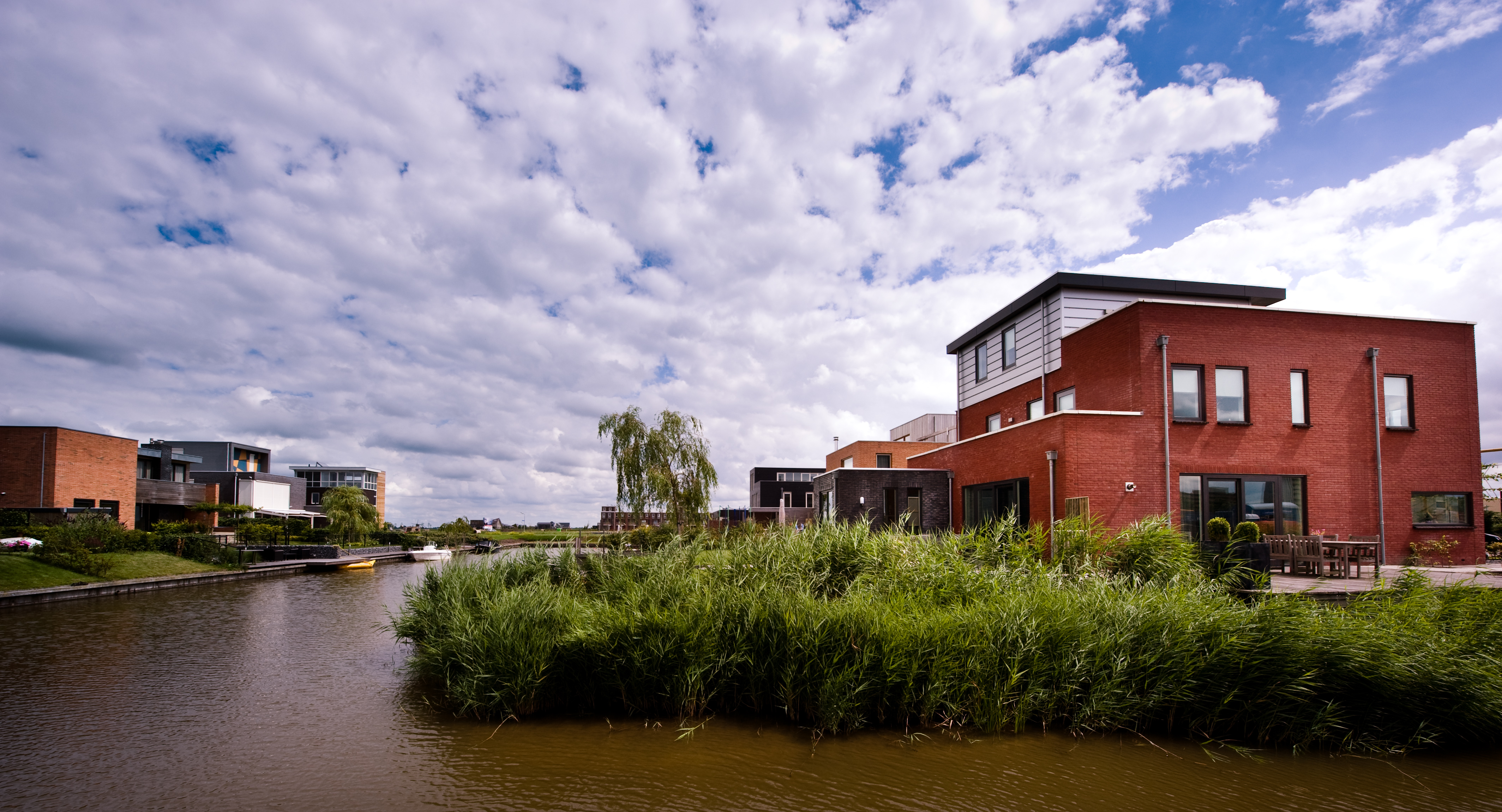 De wijk, woningen en omgeving wonen in De Steigers ligplaatsen huur of koop Houtland wonen met uitzicht in De Eilanden Waterland It Sinderlân in Waterland Blitsaerd haven De Eilanden uitzicht