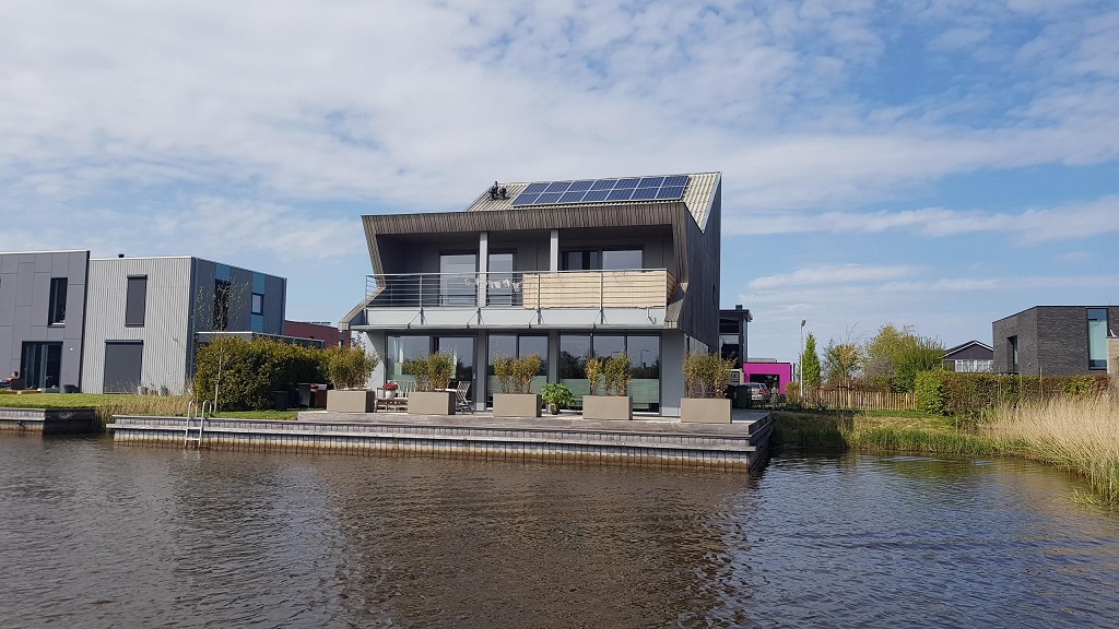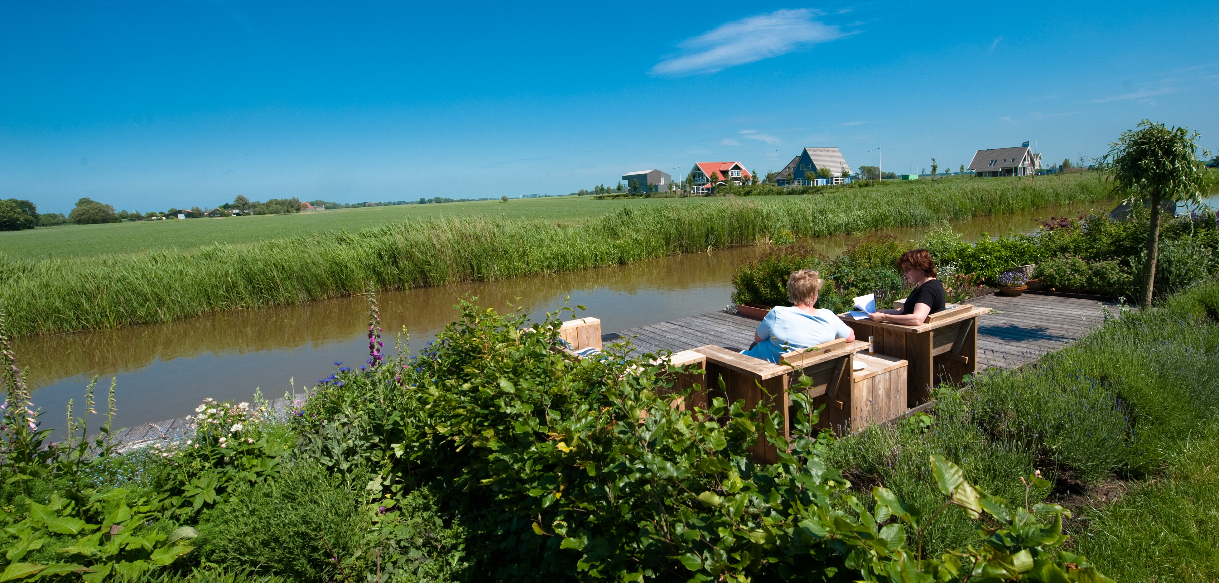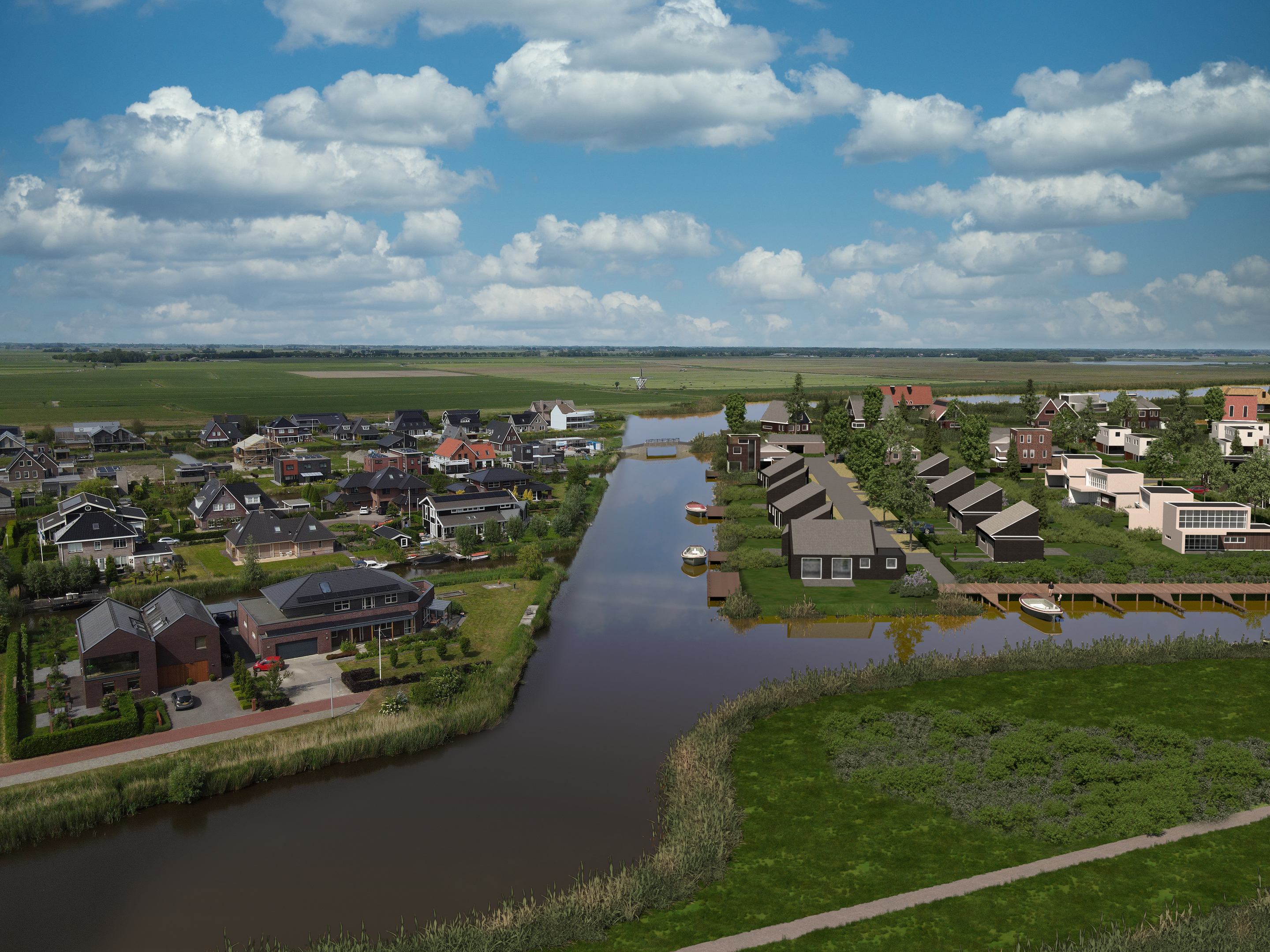 De wijk, woningen en omgeving wonen in De Steigers ligplaatsen huur of koop Houtland wonen met uitzicht in De Eilanden Waterland It Sinderlân in Waterland Blitsaerd haven De Eilanden uitzicht